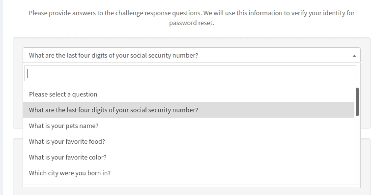 - You will then see a listing of the challenge response questions.