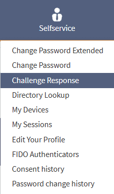 - From the top menu, click on SelfService and choose Challenge Response from the dropdown.