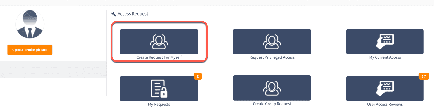 - Select Create Request For Myself from the SelfService portal landing page as shown in the image below.