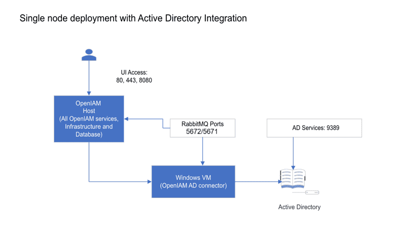 | Windows Connector VM | Connects to 5671/5672 of OpenIAM | Connector will send and receive messages back to RabbitMQ using this port. |