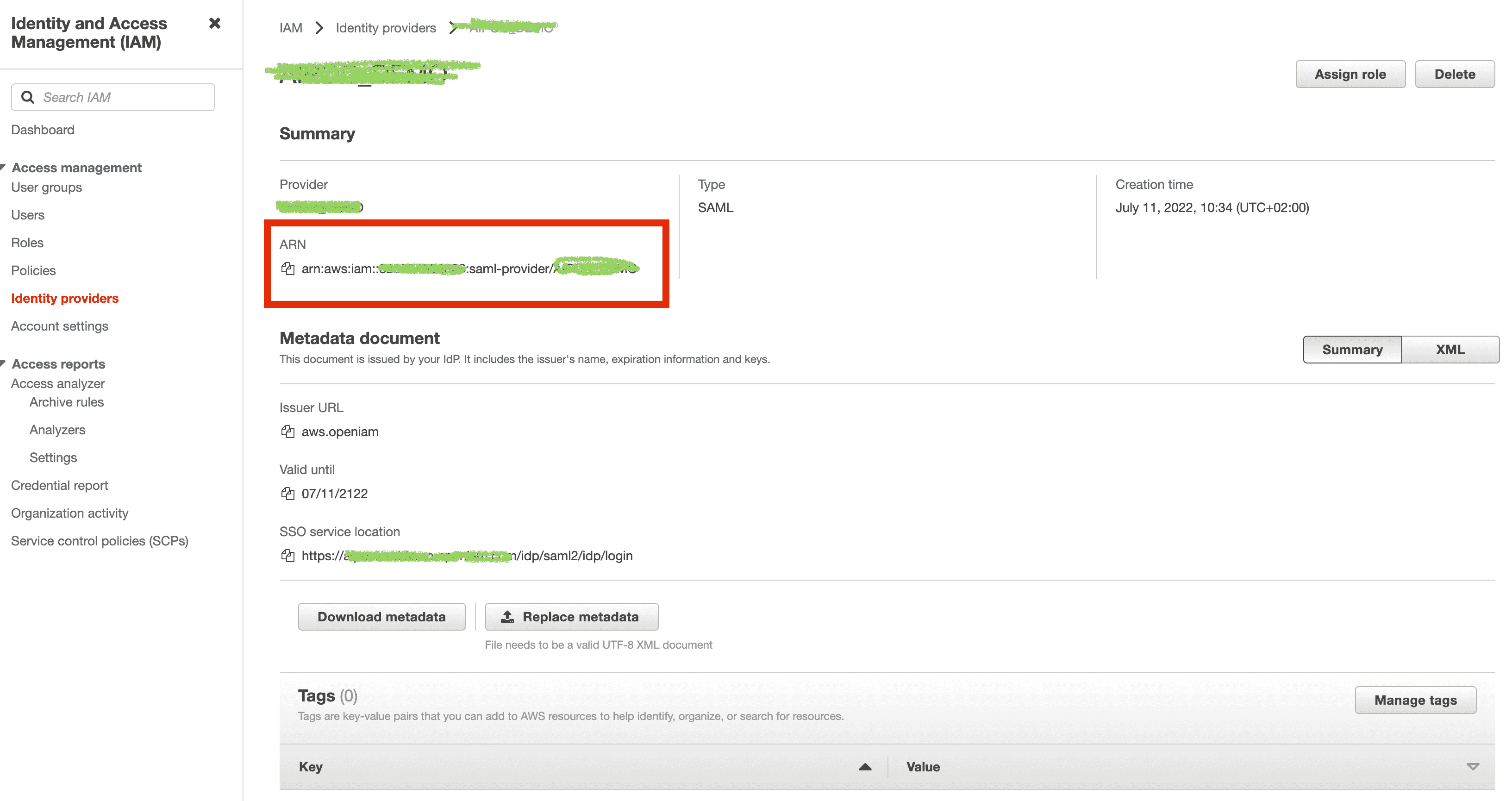 After provider will be created, please copy its ARN from Summary section and save it somewhere.