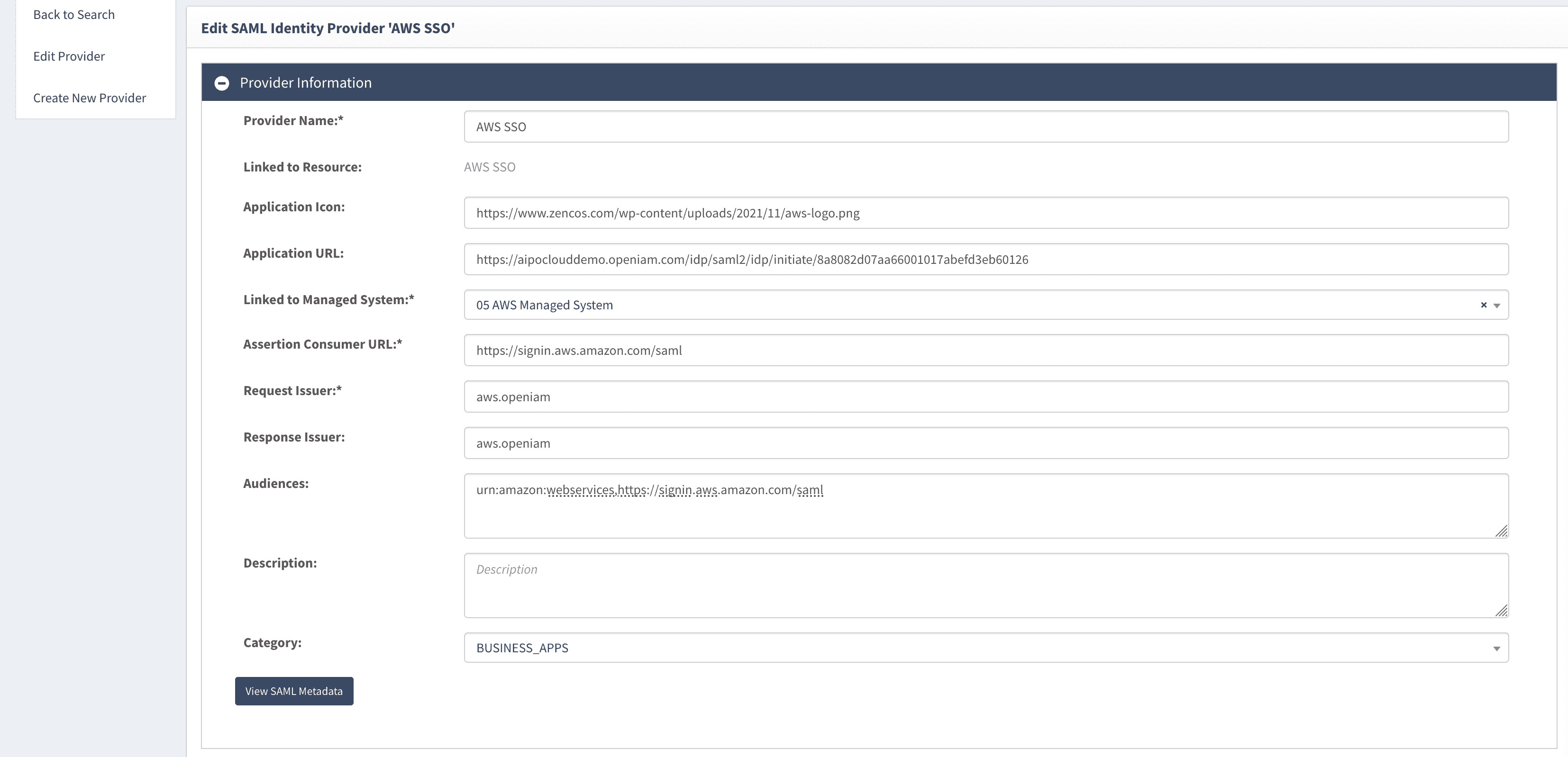 | Request Issuer | Unique identifier. ie: aws.openiam |